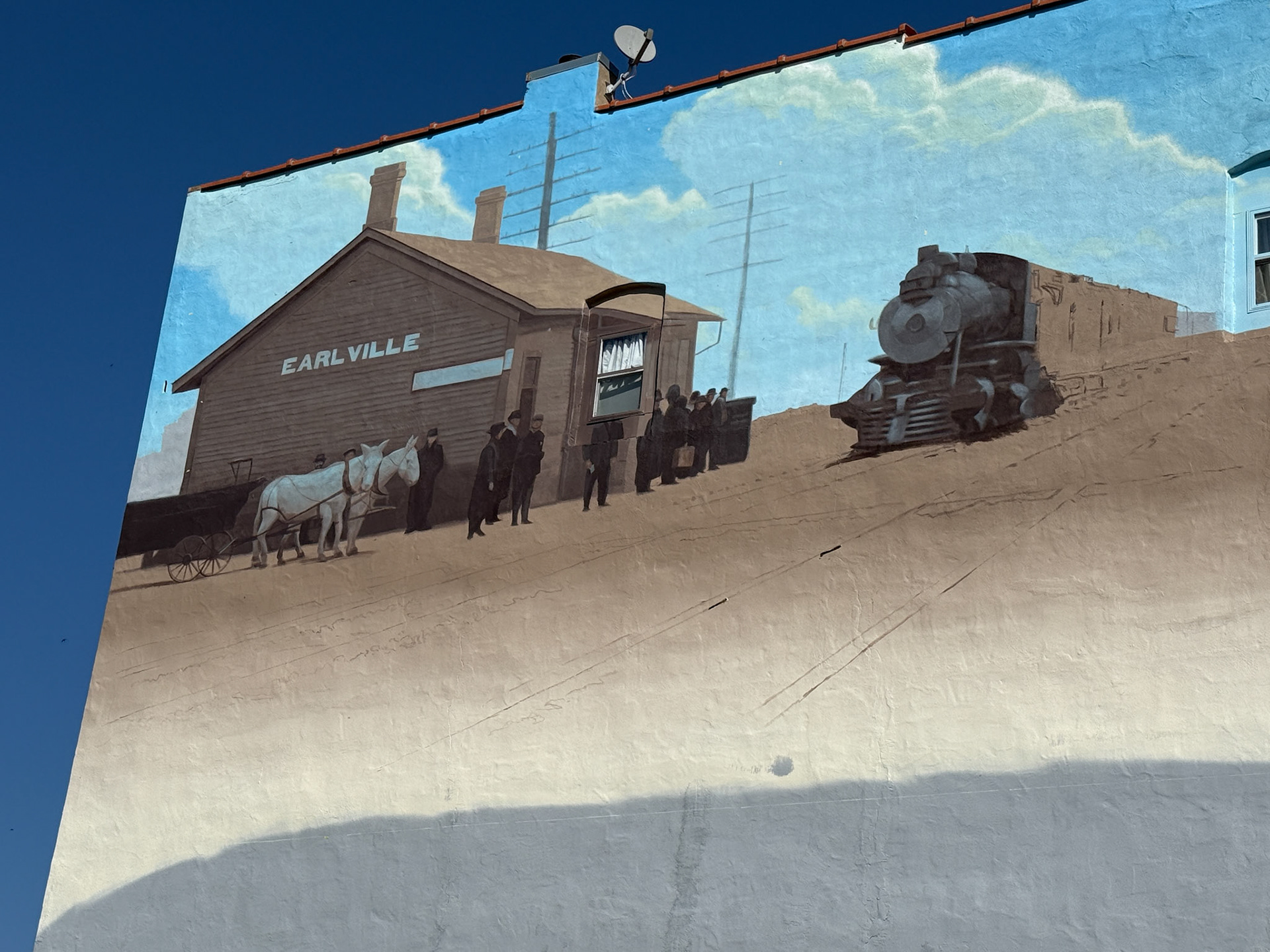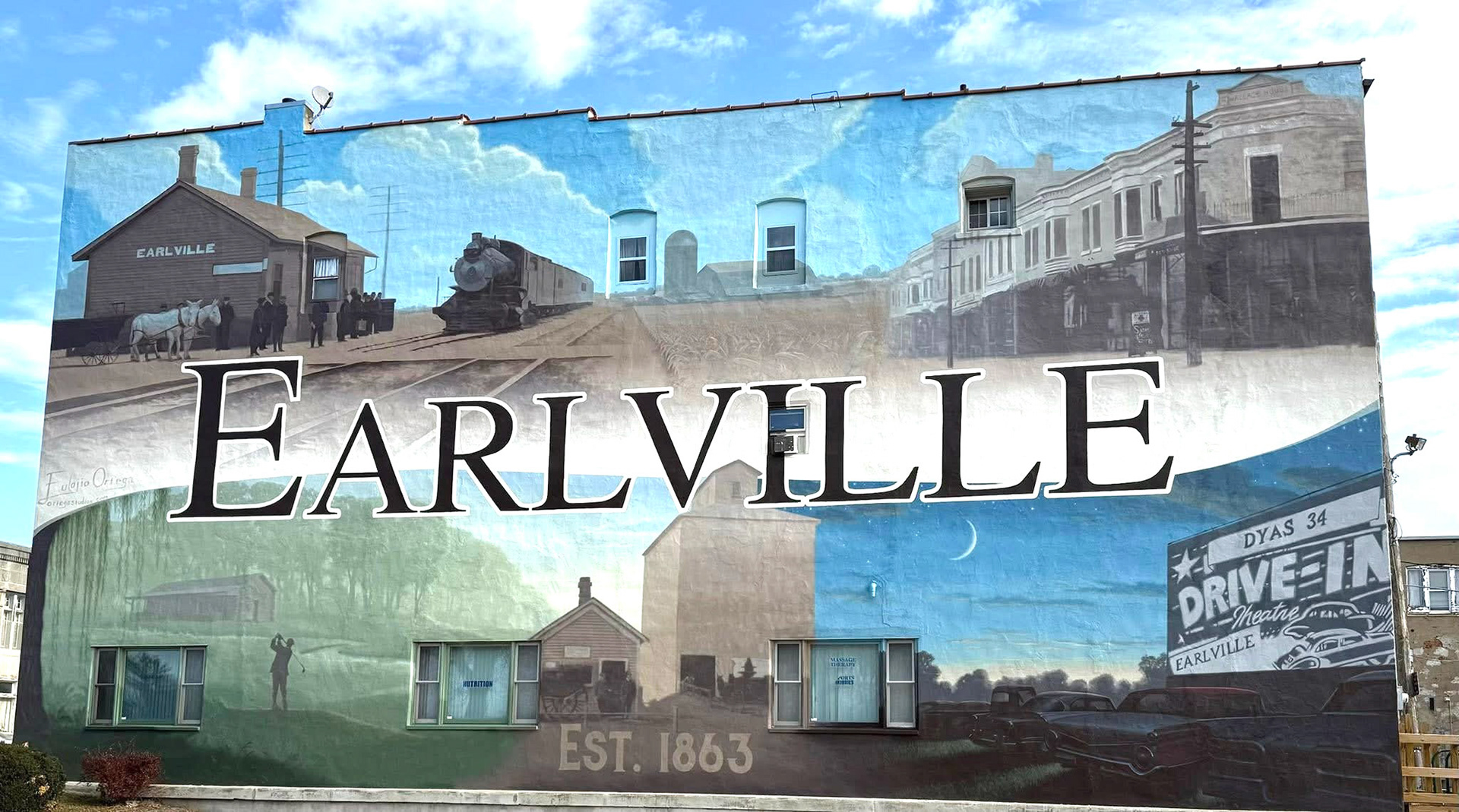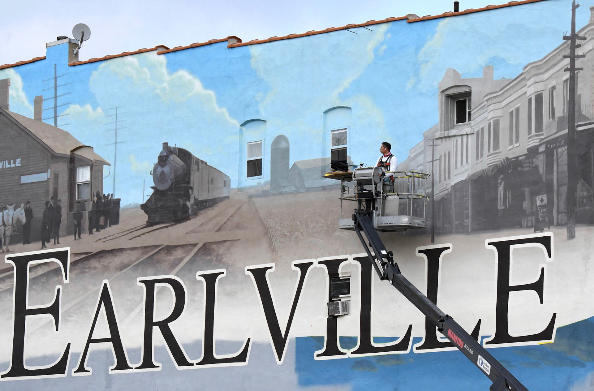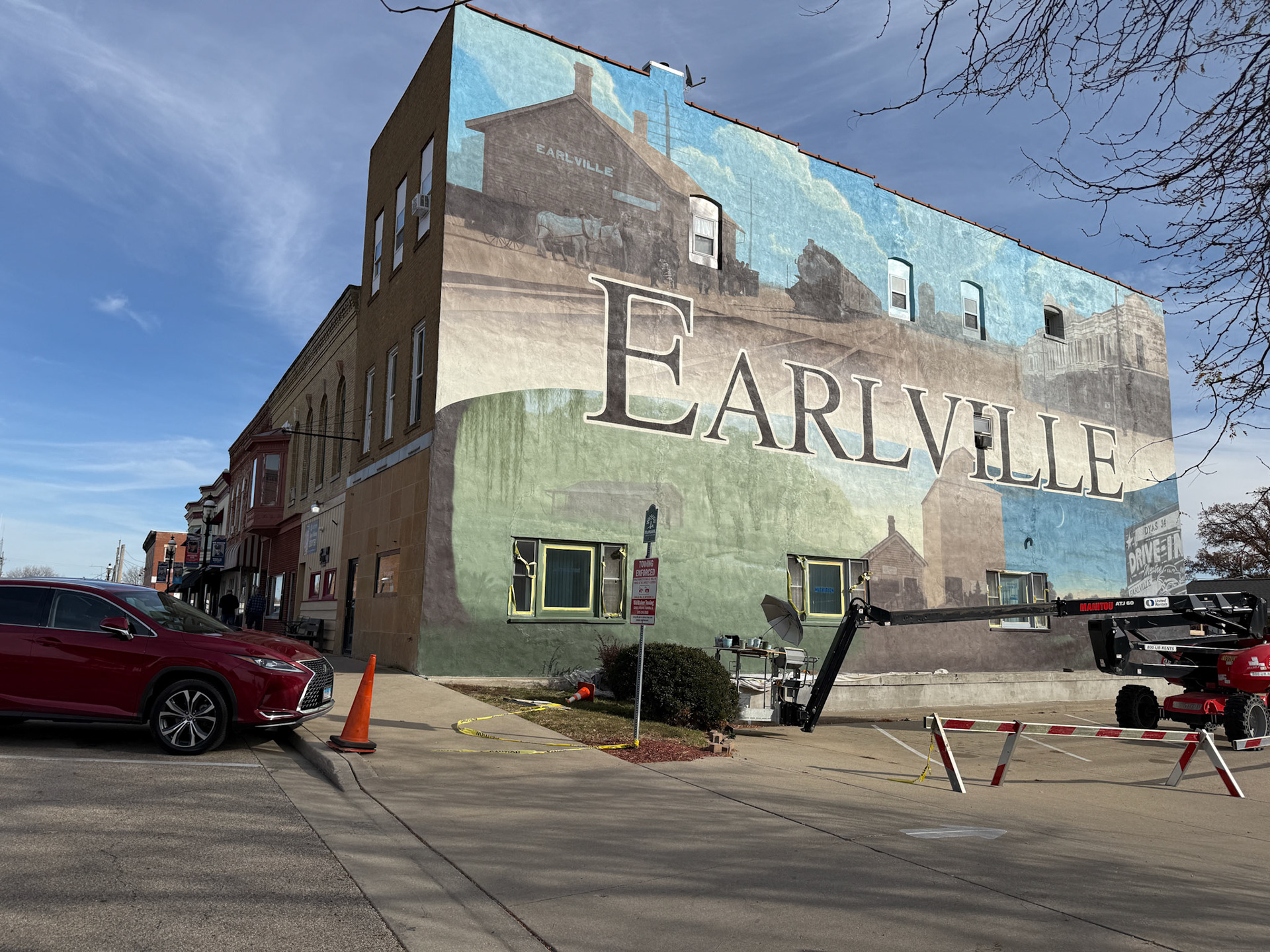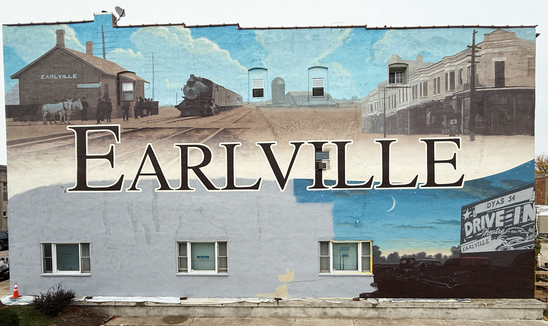 Historic themed, hand painted mural. 4,000 sq. ft. in size. The transformation of this space and the beautifying result to the town is one of my proudest achievements.